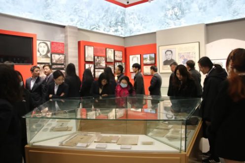 儀式結(jié)束后,全體人員懷著崇敬的心情,瞻仰了革命烈士紀念堂。一幅幅珍貴的歷史照片、一件件斑駁的實物、一段段感人的故事,仿佛將大家?guī)Щ氐侥莻€戰(zhàn)火紛飛的年代,大家深刻感受到革命先烈們?yōu)榱嗣褡濯毩⒑腿嗣窠夥?,拋頭顱、灑熱血的崇高精神。