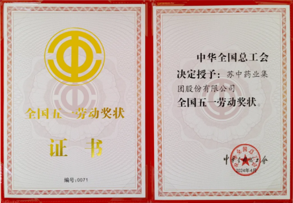 近日,2024年慶?!拔逡弧眹H勞動節(jié)暨全國五一勞動獎和全國工人先鋒號表彰大會在北京舉行,蘇中藥業(yè)集團股份有限公司榮獲“全國五一勞動獎狀”。