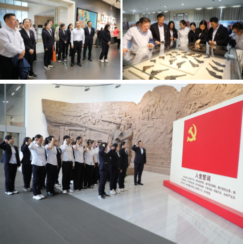 在新四軍黃橋戰(zhàn)役紀(jì)念館內(nèi),跟隨講解員的引導(dǎo),大家透過歷史照片、實(shí)物陳列與場(chǎng)景還原,深入了解了黃橋戰(zhàn)役的背景與過程,深刻感悟共產(chǎn)黨人不畏強(qiáng)敵、以少勝多的英勇智慧與革命氣概。面對(duì)鮮紅黨旗,全體黨員重溫入黨誓詞,進(jìn)一步堅(jiān)定了初心使命。