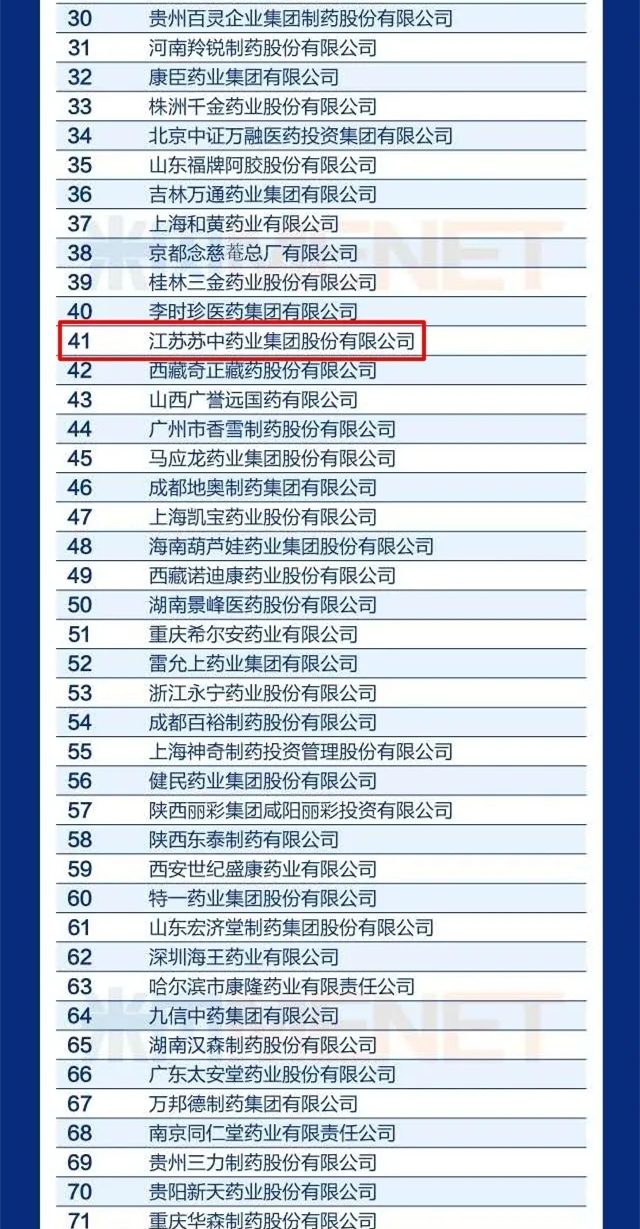 近日,萬眾期待的2019年度中國醫(yī)藥工業(yè)百強(qiáng)榜單隆重發(fā)布,在2019年度中國中藥企業(yè)TOP100排行榜中,江蘇蘇中藥業(yè)集團(tuán)股份有限公司位列第41位,連續(xù)14年入選中國醫(yī)藥百強(qiáng)行列。