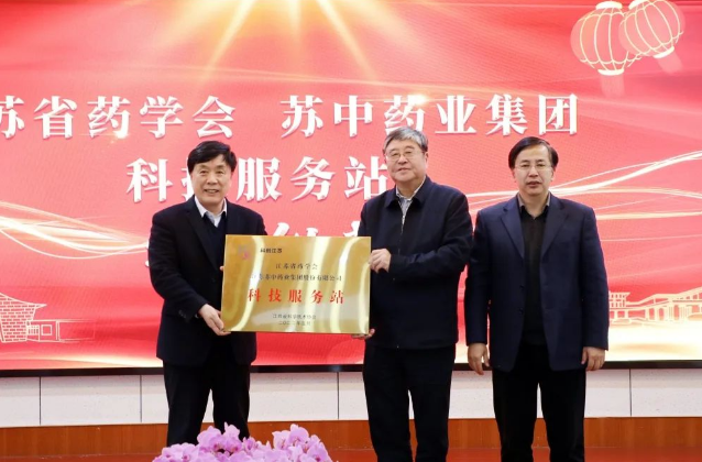 江蘇省科學(xué)技術(shù)協(xié)會副主席馮少東為江蘇省藥學(xué)會&蘇中藥業(yè)集團“科技服務(wù)站”授牌