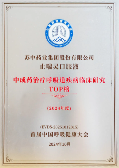 10月12日,由科學(xué)技術(shù)部、國(guó)家衛(wèi)生健康委員會(huì)為指導(dǎo)單位,廣州國(guó)家實(shí)驗(yàn)室、國(guó)家呼吸醫(yī)學(xué)中心等共同主辦的首屆中國(guó)呼吸健康大會(huì)在廣東橫琴隆重召開。本次大會(huì)以“守護(hù)健康·共創(chuàng)未來(lái)”為主題,在中醫(yī)藥呼吸疾病循證研究平行論壇上,重磅揭曉了“中成藥治療呼吸道疾病臨床研究TOP榜(2024)”。蘇中藥業(yè)集團(tuán)止喘靈口服液基于嚴(yán)謹(jǐn)豐富的臨床循證研究證據(jù),榮登該榜單。